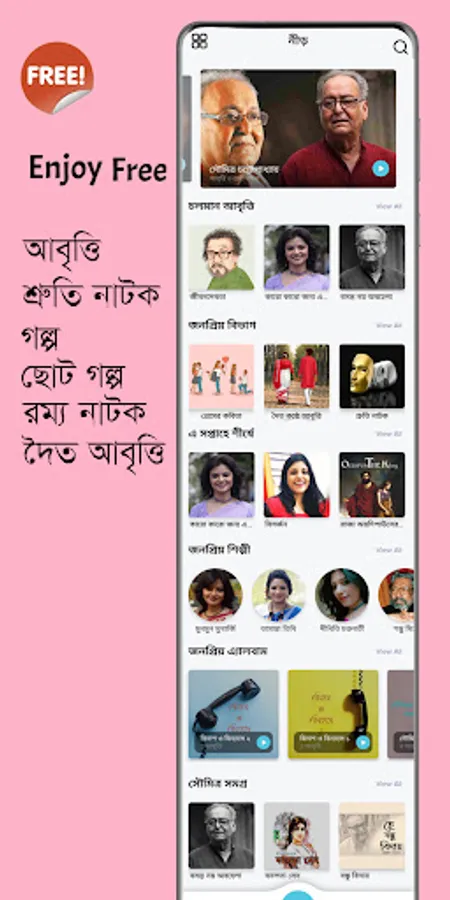 The relationship between human soul and mind with poetry, human emotion, love and suffering are expressed in poetry. Our recitation omnibus app provides audio of all famous recitations and recitals, audio dramas by Bachich artists.