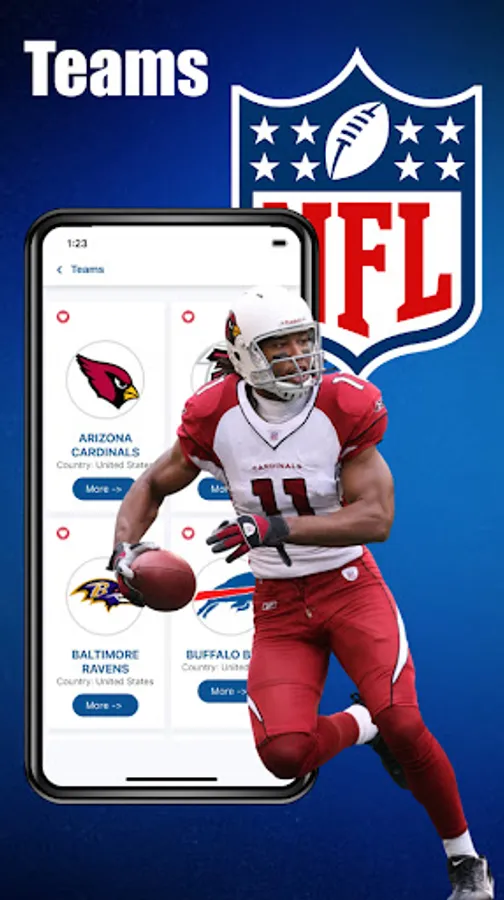 This is an unofficial app of the National Football League. It's not endorsed or affiliated with American football league. Any trademarks used in the app are done so under "fair use" with the sole purpose of identifying the respective entities. We are using API of https://www.thesportsdb.com/ to collect data and live score.