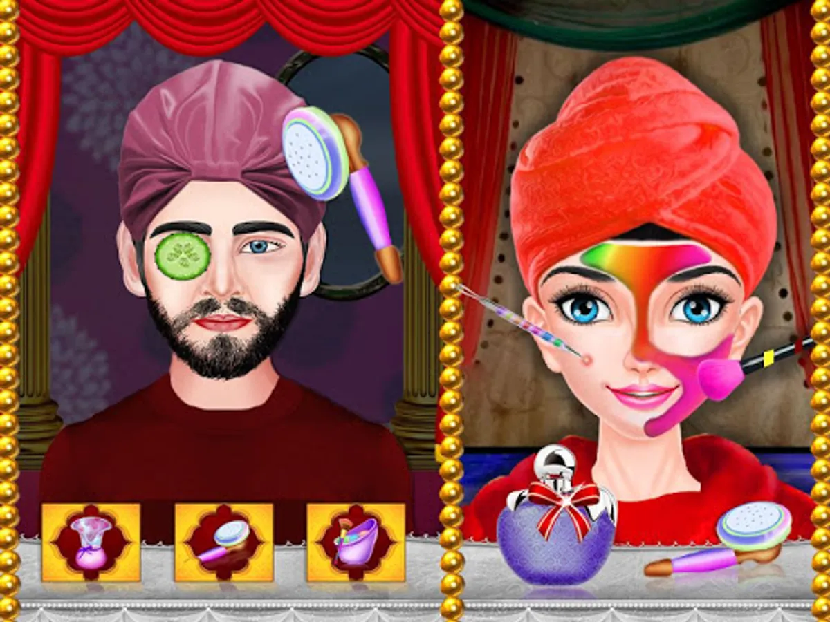 The brides and grooms loves their traditional wear on their special day to add some pages in their wedding story book.Indian Wedding Dressup is a collection of beautiful bride dresses, makeUp, mehndi, hairstyles and jewellery. Gorgeous Makeup Artist which includes Glowing Lipsticks, Eye shadows, Blushes, Eye lenses, Earrings, Necklace with different designs, unique hairstyles.