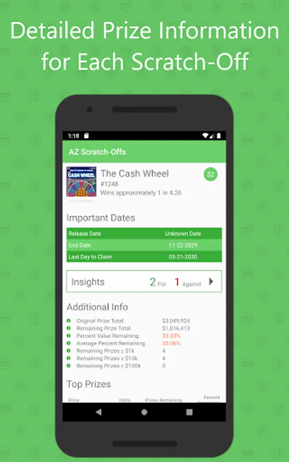 * Disclaimer 2: Whenever playing a lottery, please play responsibly. We by no means guarantee results with our app, that it will meet all of your expectations of functionality in an uninterrupted, timely, or error-free method with accurate results. Any errors in software will be corrected as soon as possible, but may occur. Any material, data, or insight gleaned from use of the AZ Lottery Scratch-Off Guide is done at your discretion. We simply wish to give players the most information publicly available to them.