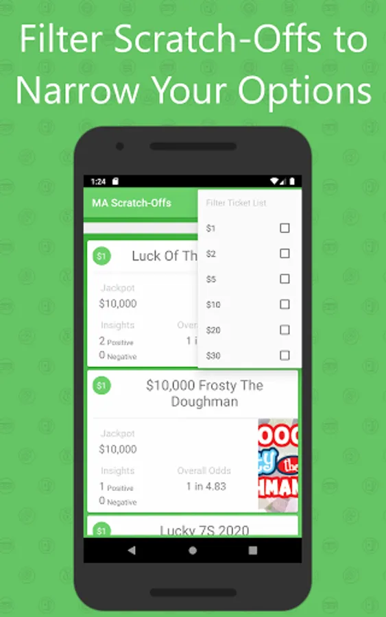 ✔ Filter the list of scratch-offs down to help narrow your search for the perfect scratcher