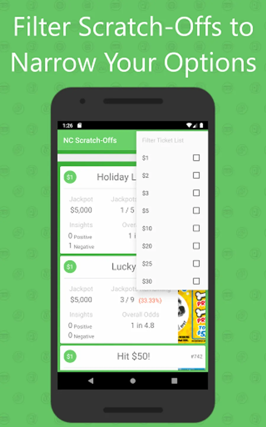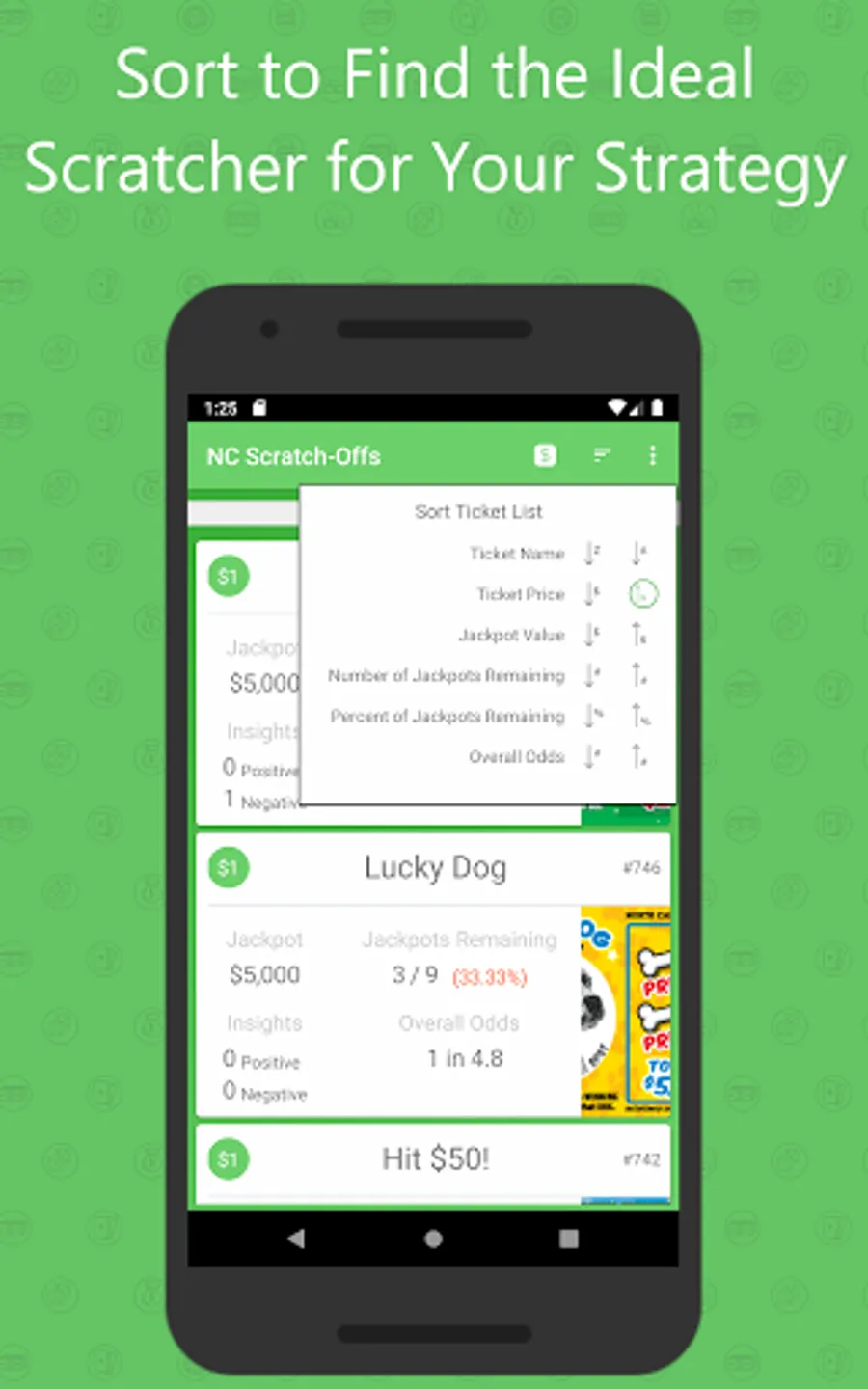 The North Carolina lottery provides so many different scratch-off games, how are you supposed to choose one to play? With the Scratch Off Guide for North Carolina Lottery, you have instant access to all of the relevant data about each game that you can use to buy the perfect ticket for your strategy. The app provides a list of all available games along with the tools to filter and sort that list of scratch-offs down to just the ones that you'd want to buy.