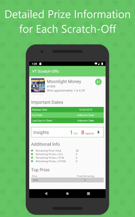 * Disclaimer 2: Whenever playing a lottery, please play responsibly. We by no means guarantee results with our app, that it will meet all of your expectations of functionality in an uninterrupted, timely, or error-free method with accurate results. Any errors in software will be corrected as soon as possible, but may occur. Any material, data, or insight gleaned from use of the VT Lottery Scratch-Off Guide is done at your discretion. We simply wish to give players the most information publicly available to them.