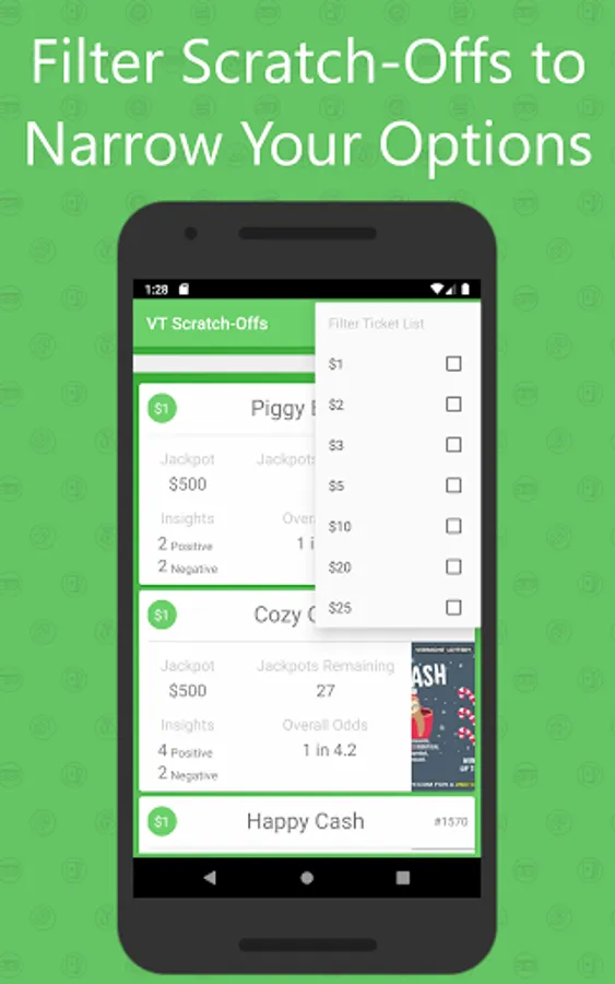 ✔ Filter the list of scratch-offs down to help narrow your search for the perfect scratcher