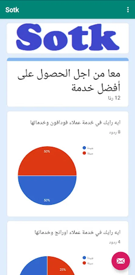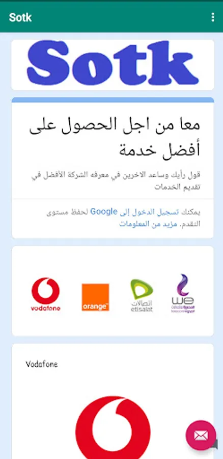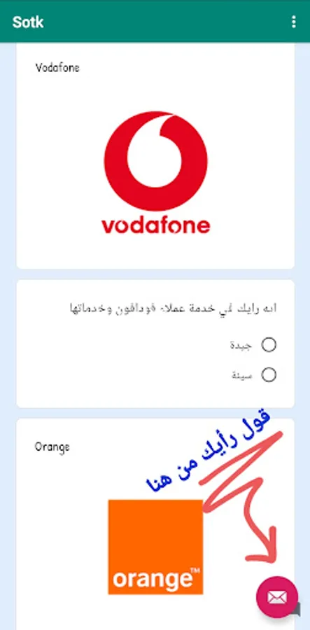 Your Voice is a simple program through which you can know the best telecom or mobile company in Egypt (Vodafone - Orange - Etisalat - We) based on people's ratings.