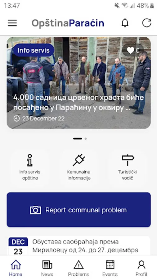 Aplikacija Paraćin je digitalna platforma za obaveštavanje stanovnika i posetilaca ove opštine. Aplikacija servira najnovije vesti iz opštine, komunalne aktivnosti, servisne informacije, događaje u gradu i turističku ponudu.