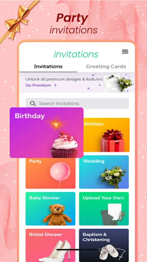 Party invitation card maker - Design Invitations for Event comes with the following features: