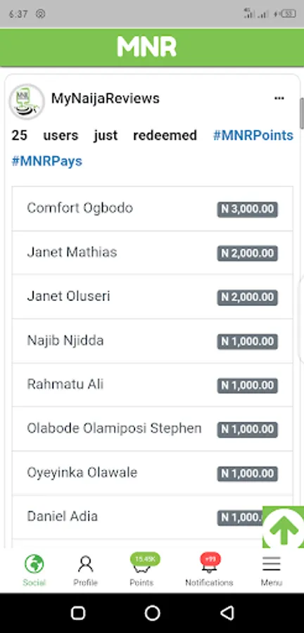 A social network that enable the user to earn points while using the app, the accumulated points can be redeemed as cash.