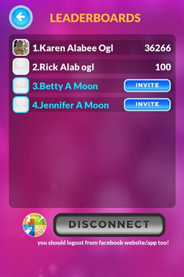 5. Integrated a leaderboards of friends. Play with your friends on facebook, invite them, challenge them,