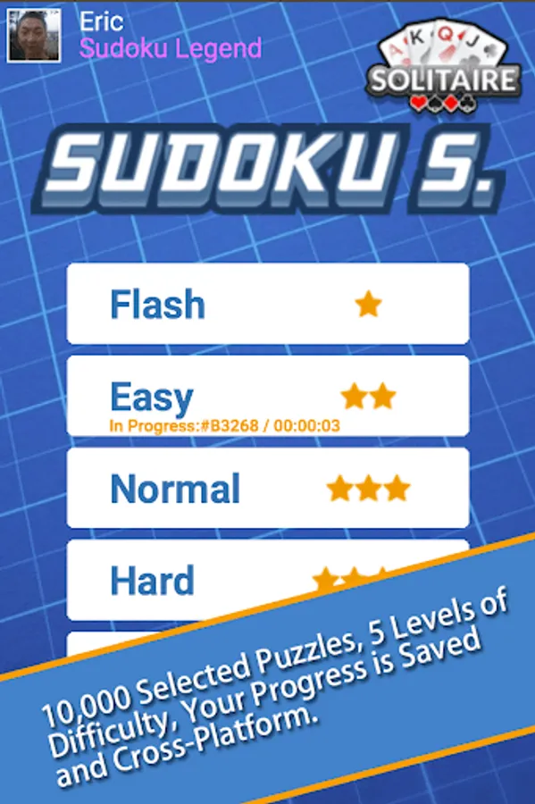 - 10,000 selected puzzles, in 5 levels of difficulty;