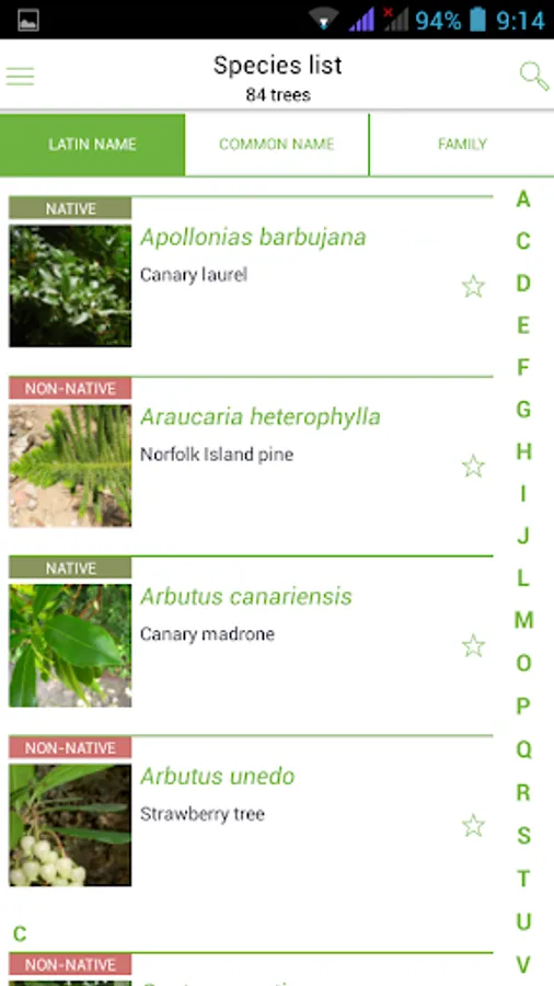 - 92 species described on 84 information sheets: all the native trees as well as those that most frequently become established in the wild in the Canary archipelago. Each species entry includes a distribution map, a brief description and one or more photos.