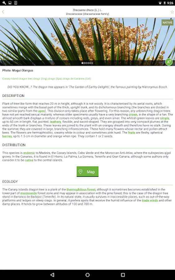 Arbolapp Canarias is a free app that anyone can use, based on the scientific research carried out at the ‛Viera and Clavijo’ botanical gardens of the Canary Islands, a unit associated to the CSIC and pertaining to the Island Council of Gran Canaria.