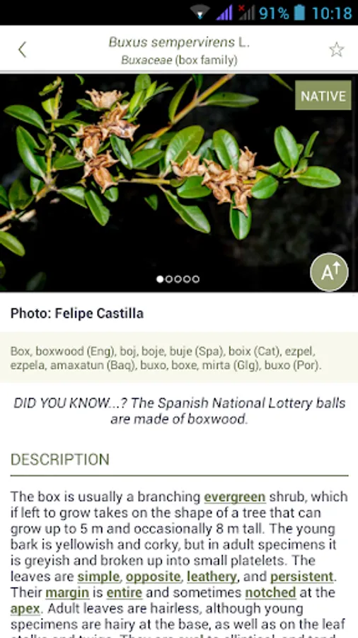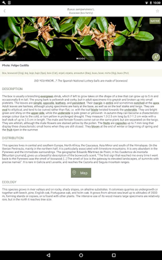 Arbolapp does not need an internet connection to work, making it really useful for trips into the natural environment. Its contents are aimed at anyone wanting to learn about or increase their knowledge of the trees they find in their surroundings. For this reason, an effort has been made to use understandable language and simple explanations without dumbing down the content.