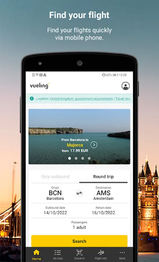 Over 120 destinations await you on the Vueling app. Book cheap flights, choose the fare that best suits your trip and customise it with the most exclusive services.