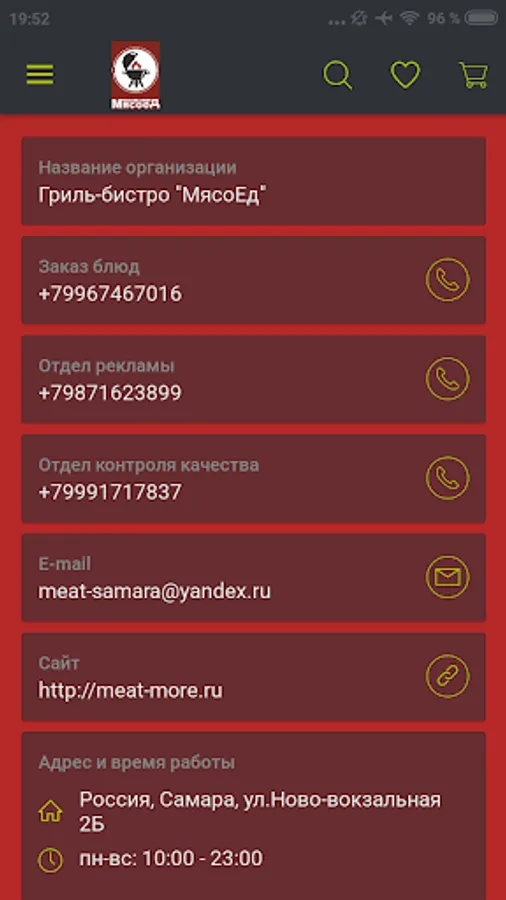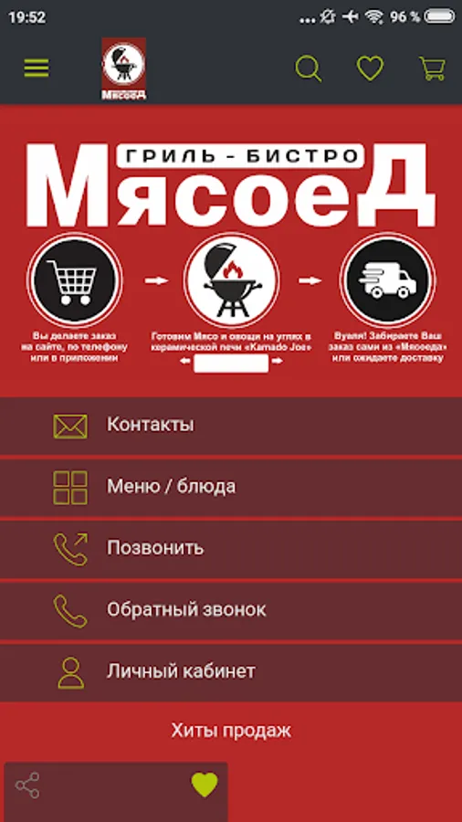 You can make an order through the mobile application, by calling 8 (846) 252-66-77, 8 (846) 243-43-83, or on our official website https://www.meat-eaters.ru