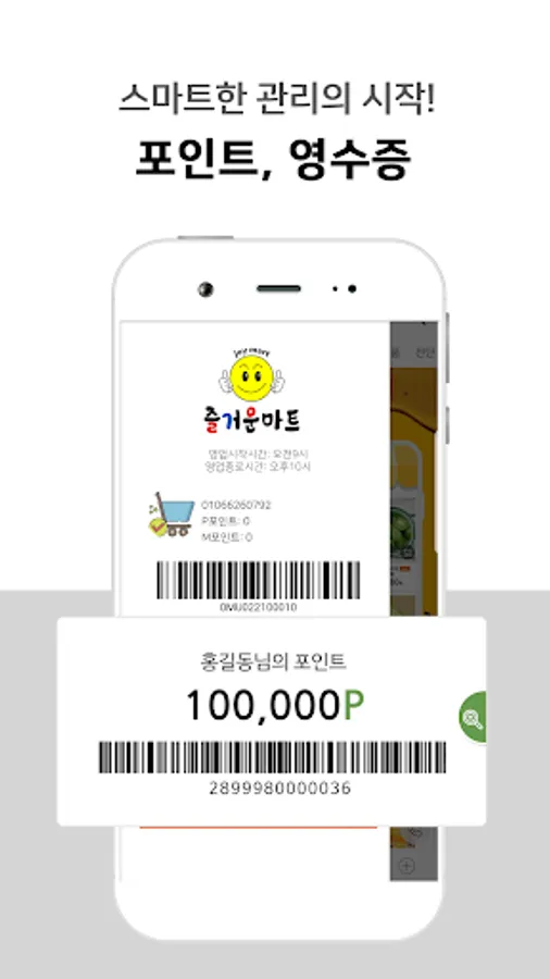 - 즐거운마트부평점의 포인트 카드를 모바일로 편리하게 이용하시고, 언제 어디서든 포인트를 확인하실 수 있습니다.