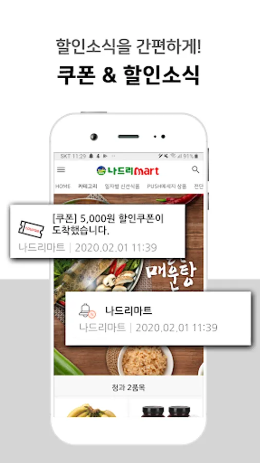 스마트폰으로 나드리마트의 다양한 혜택을 누려보세요.