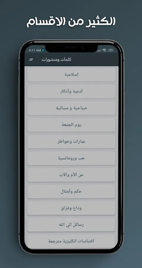 The application contains two main sections; A section for photo cases and a section for written cases. As each section in turn contains many sub-sections such as the section of judgment, love, jokes, sadness, friendship ... etc.