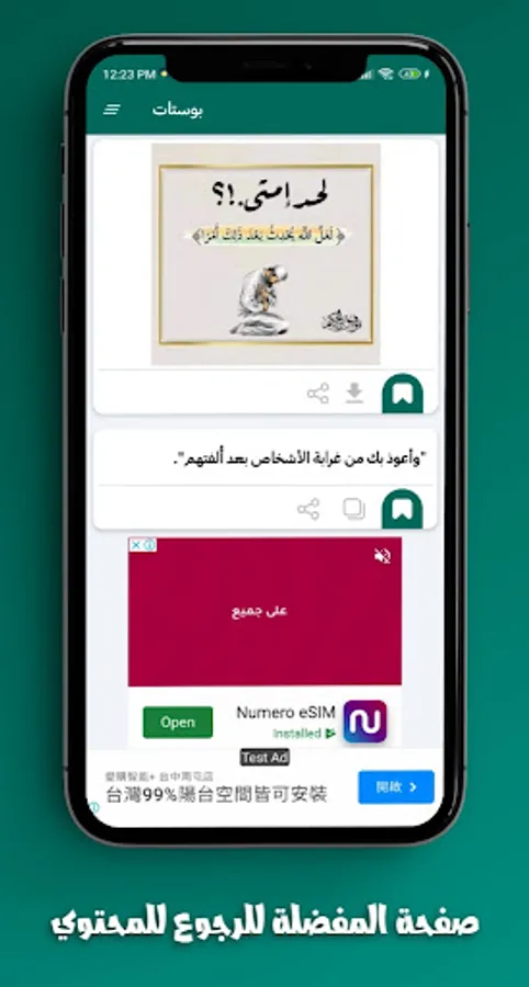 - Sections of the application "morning publications, evening publications, Islamic publications, supplications publications that comfort hearts, marriage congratulatory posts, engagement congratulatory publications,