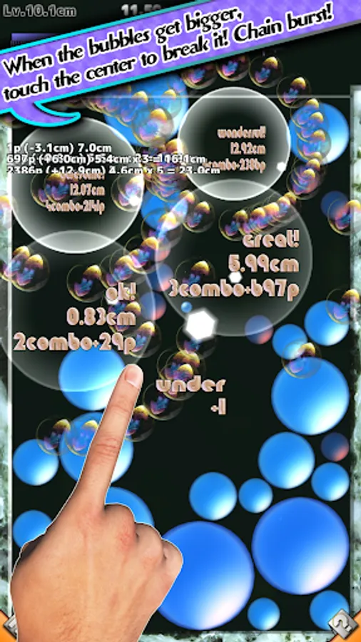 - If you tap the center area, the bubble will pop. If there is a poppable bubble near the bubble you popped, it will cause a second pop for a combo.