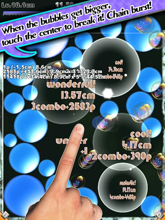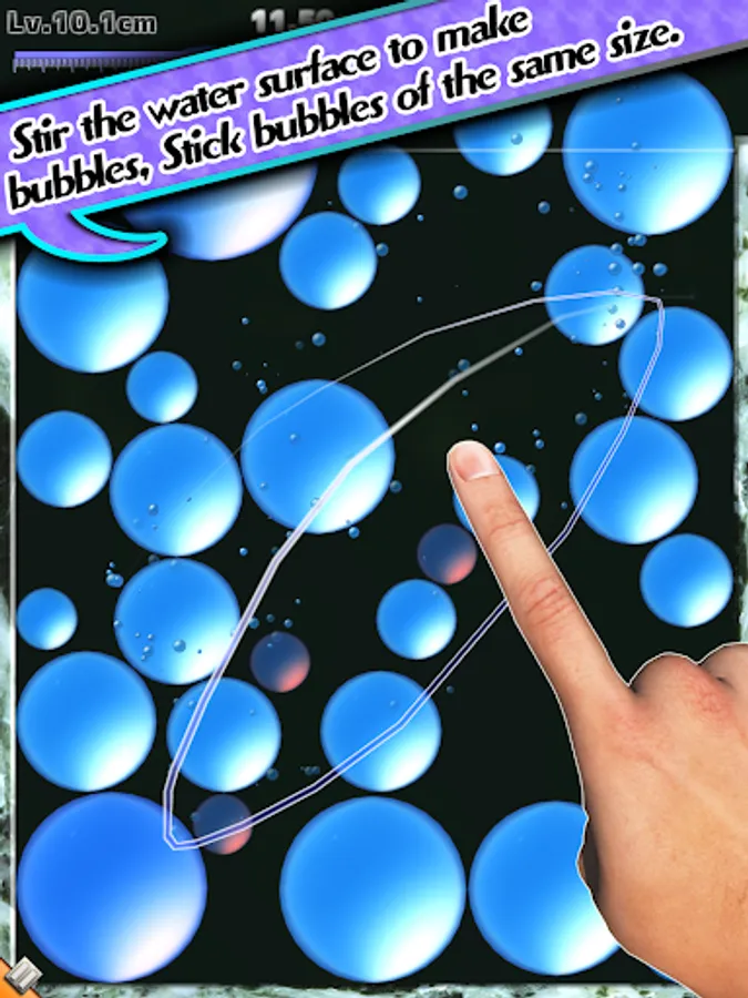 - If you trace the screen with your finger in a stirring motion, new bubbles will form. You can also move the surrounding bubbles.