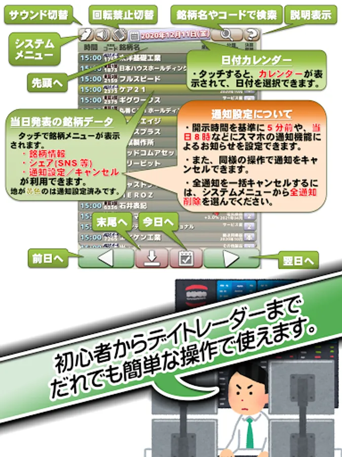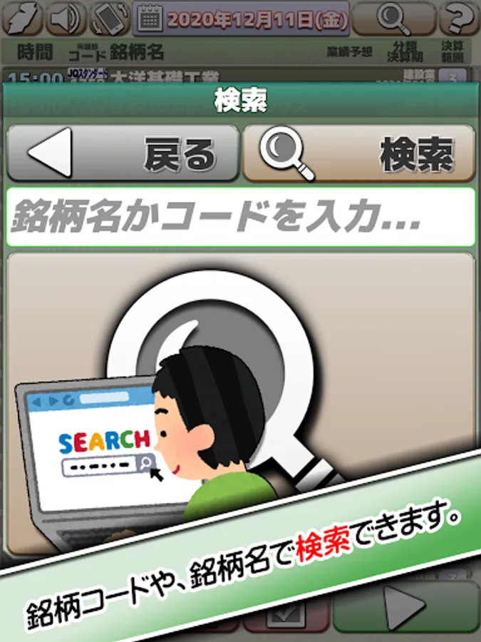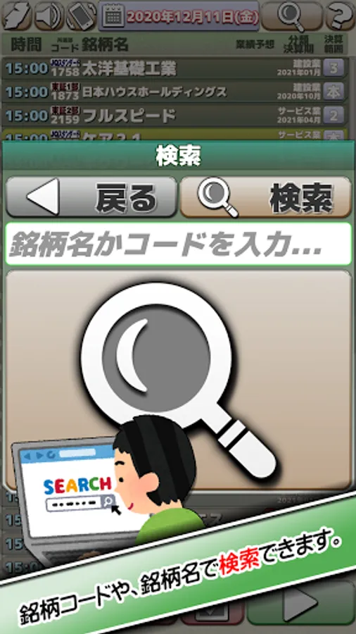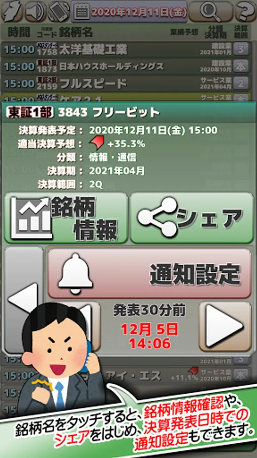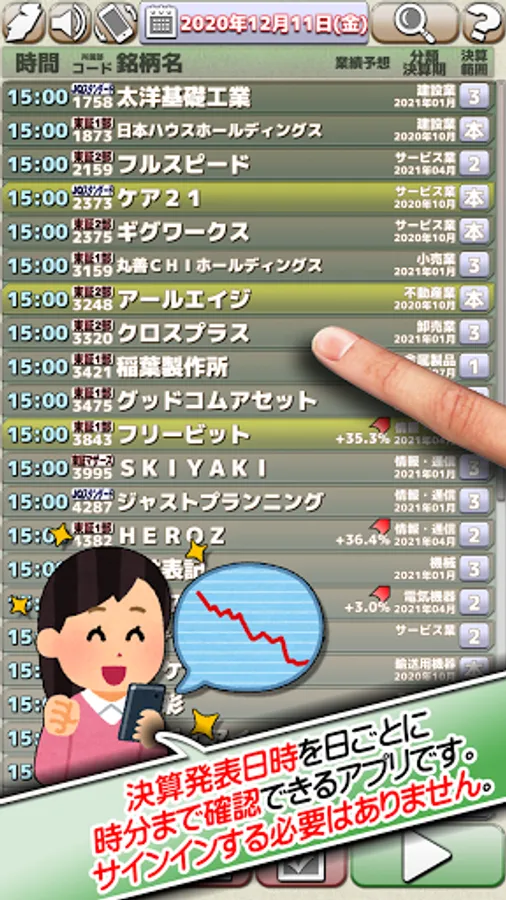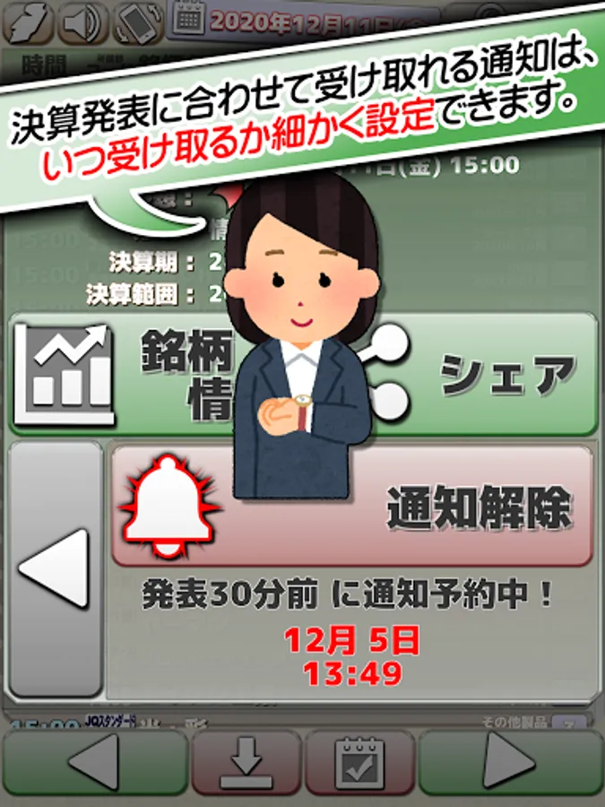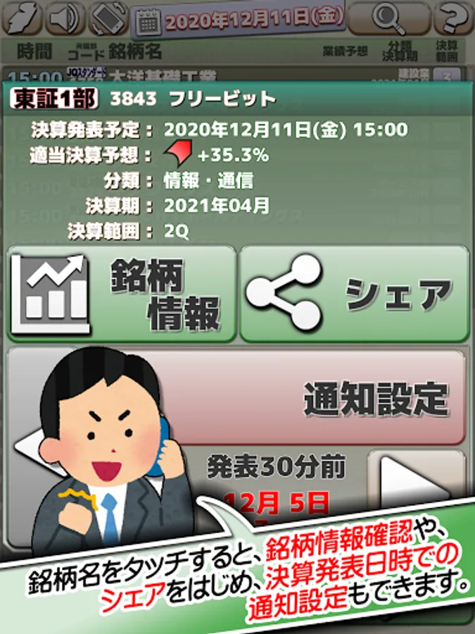 In addition, it has convenient functions such as notification function before and after the announcement of financial results, stock search, and confirmation of stock details.