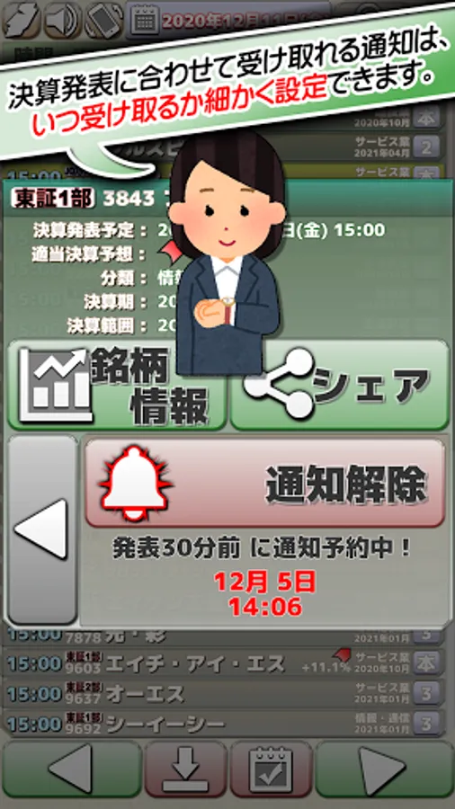 ・ You can receive notifications before and after the announcement of financial results for each issue.