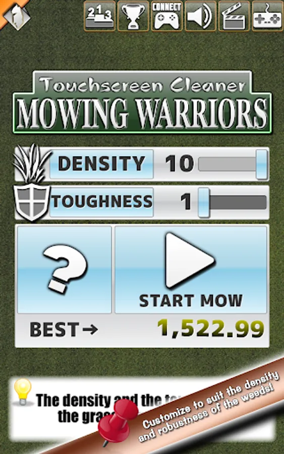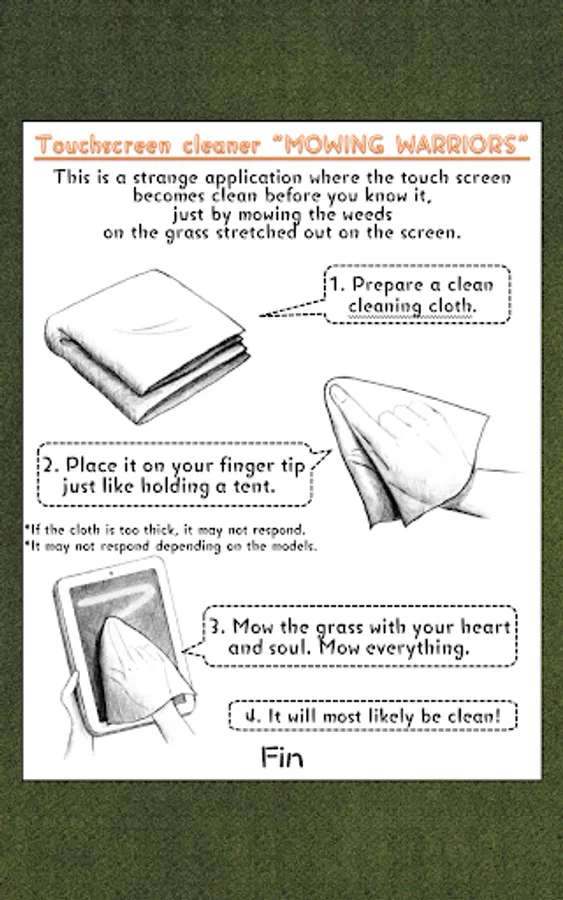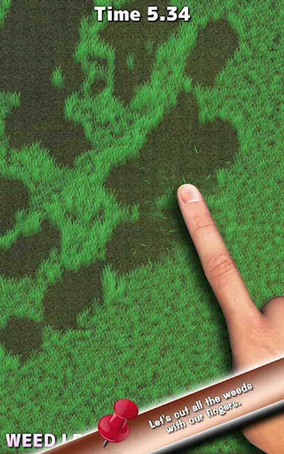 This is a strange application where the touch screen becomes clean before you know it, just by mowing the weeds on the grass stretched out on the screen.