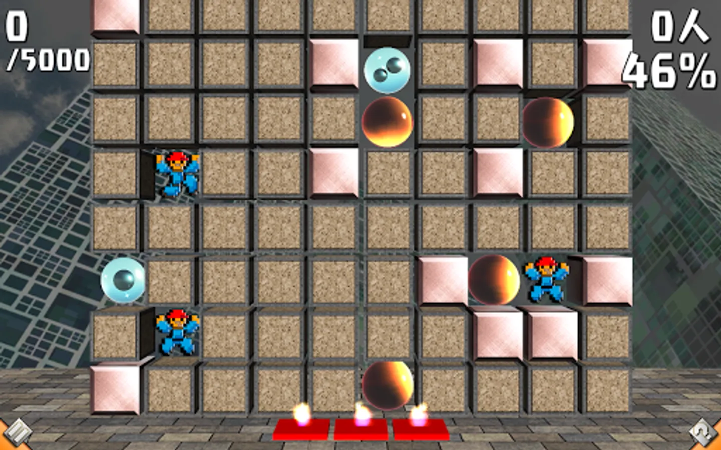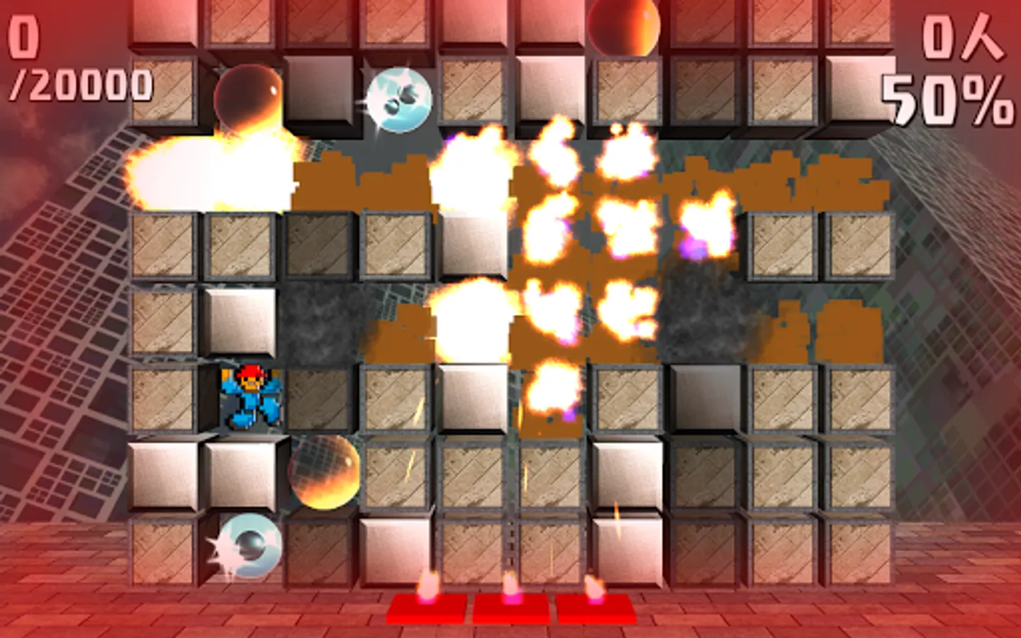 ・ Tap a Wooden Block to set it on fire (flames spread to surrounding blocks). During normal fire power 3, if there are no obstacles, flames spread as shown here.