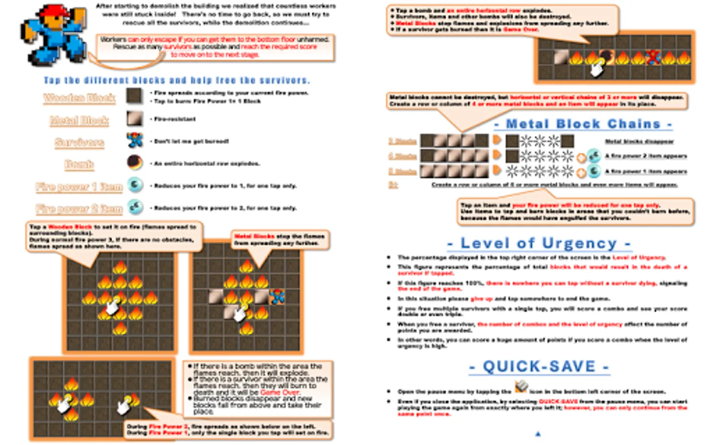・ During Fire Power 1, only the single block you tap will set on fire.