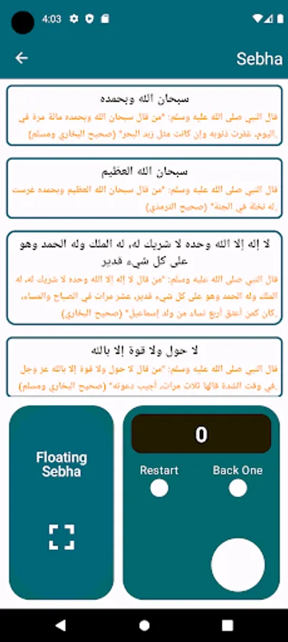 It is an Islamic religious application that enables the user to read the Qur’an, listen, praise, display a floating rosary, add a rosary as a face, and also add, delete, and filter notes.