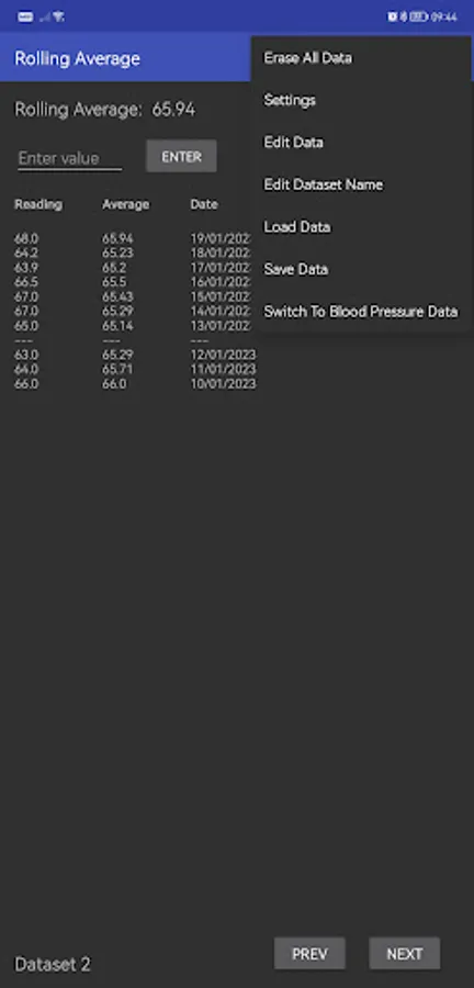 You can choose how many values will be used to calculate the rolling average up to a maximum of 100, as well as the number of decimal places to be displayed. It's perfect for tracking weight, BMI, blood sugar levels or any other type of measurement.
