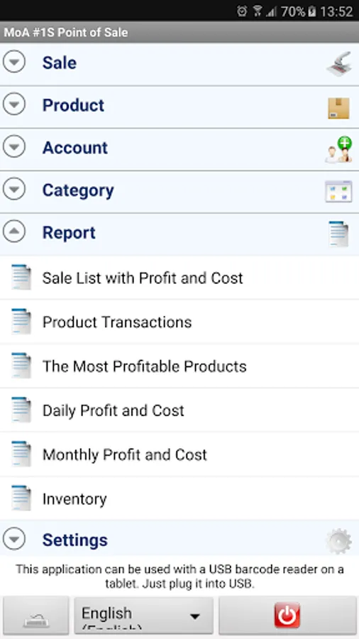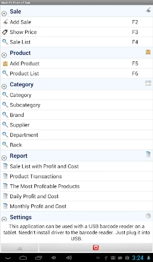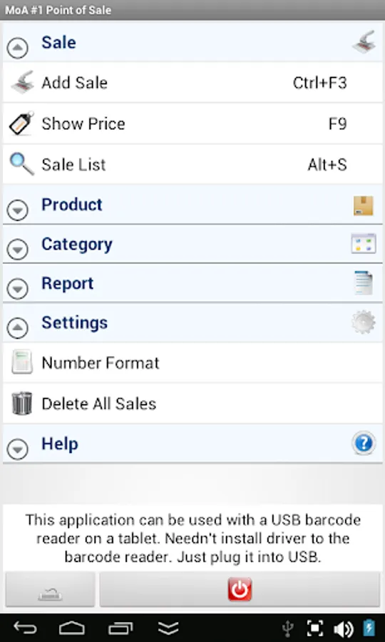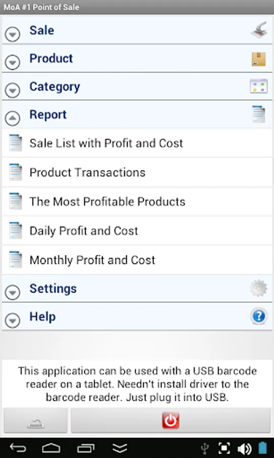 ●This application can be used together with Bluetooth or USB barcode reader on the tablets.