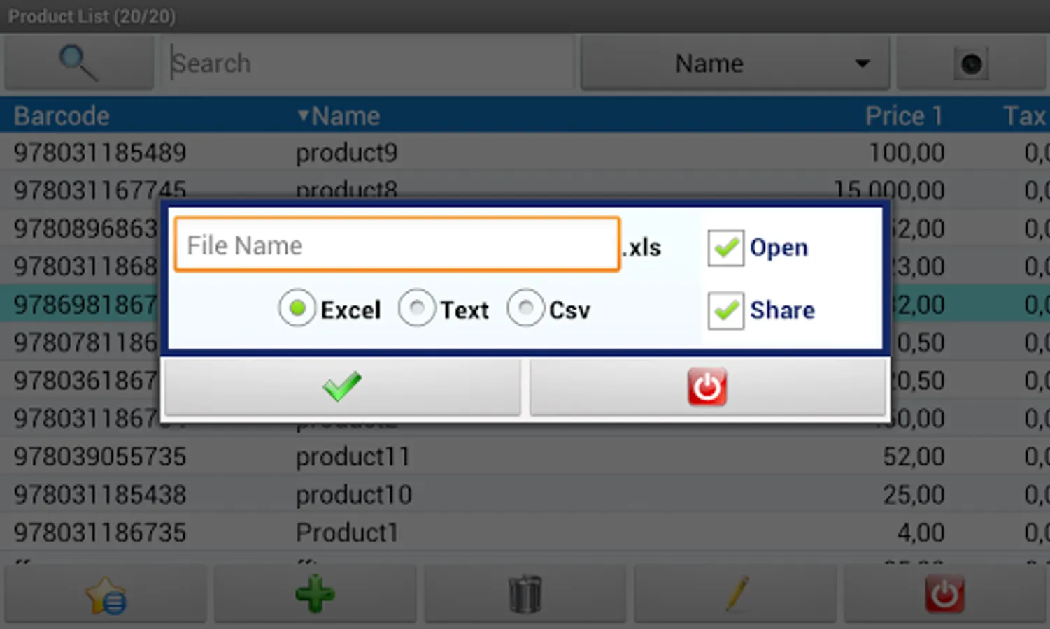 ●Export and share product lists, sale lists and reports to excel, csv and txt formats.