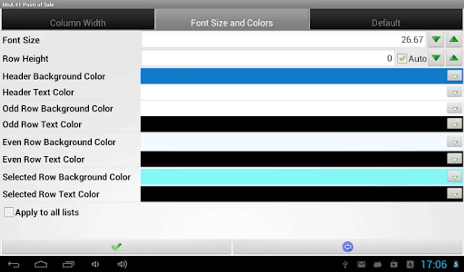 ●Customize all lists. You can change font size, font color, row height and background of the lists. Besides, you can also change column width or you can hide columns.
