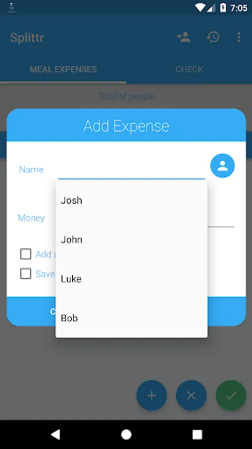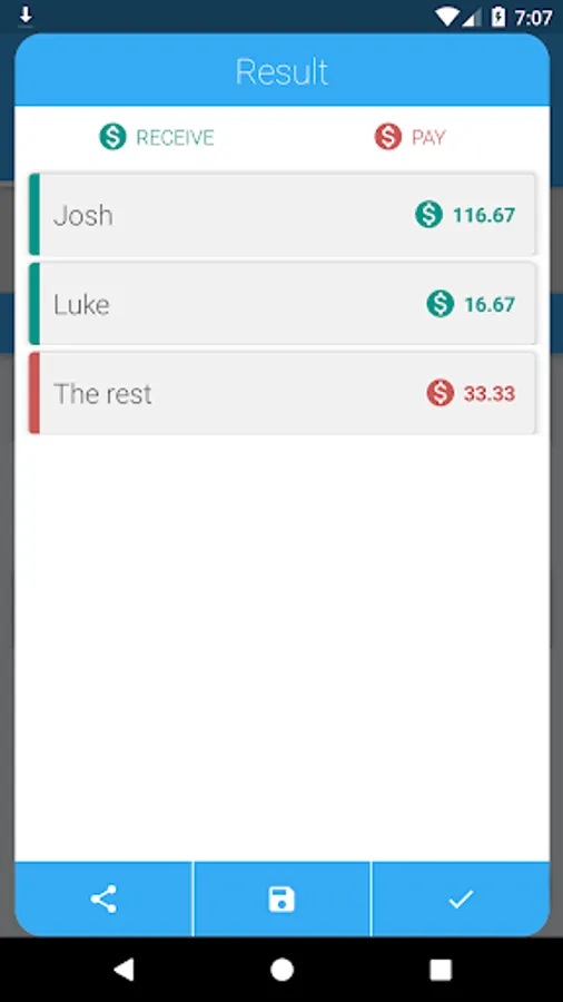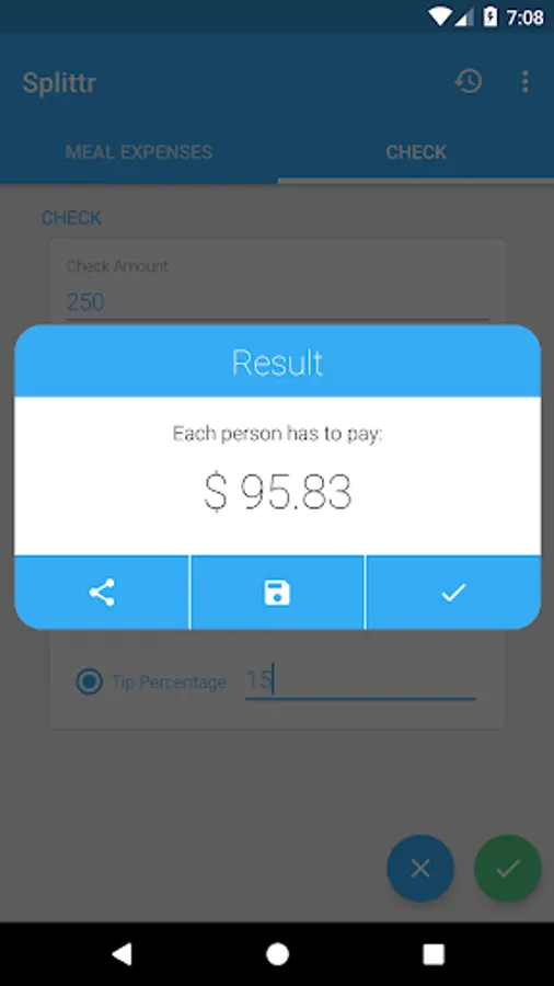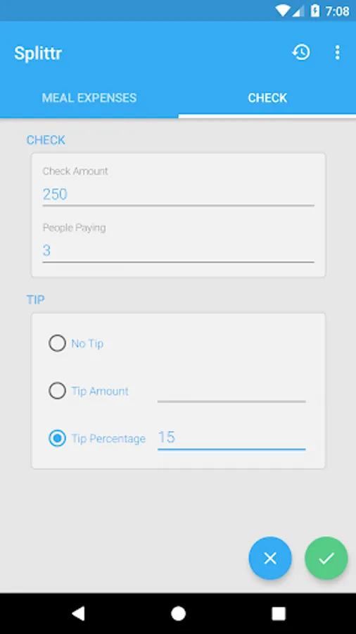 -Split check: When you go out to eat with friends or family and you have to split the check in equal parts. Tip options included.