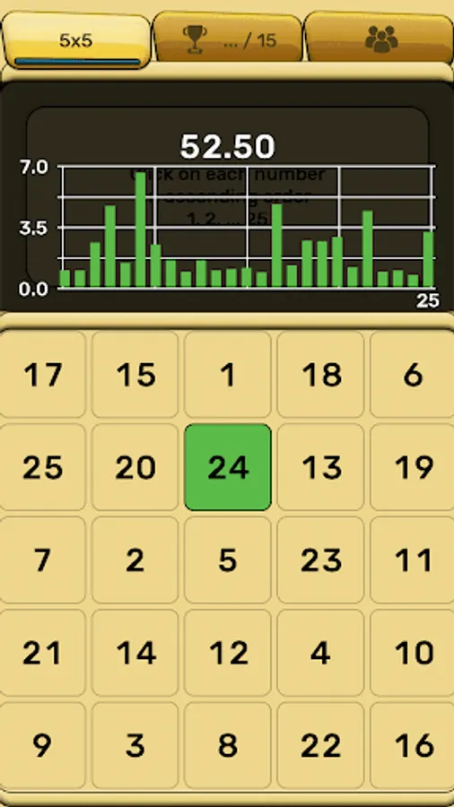 This application has Schulte tables of different sizes, as well as the ability to compare your achievements with those of other players! Maintain clarity and breadth of vision to win. Improve yourself by improving your game record!