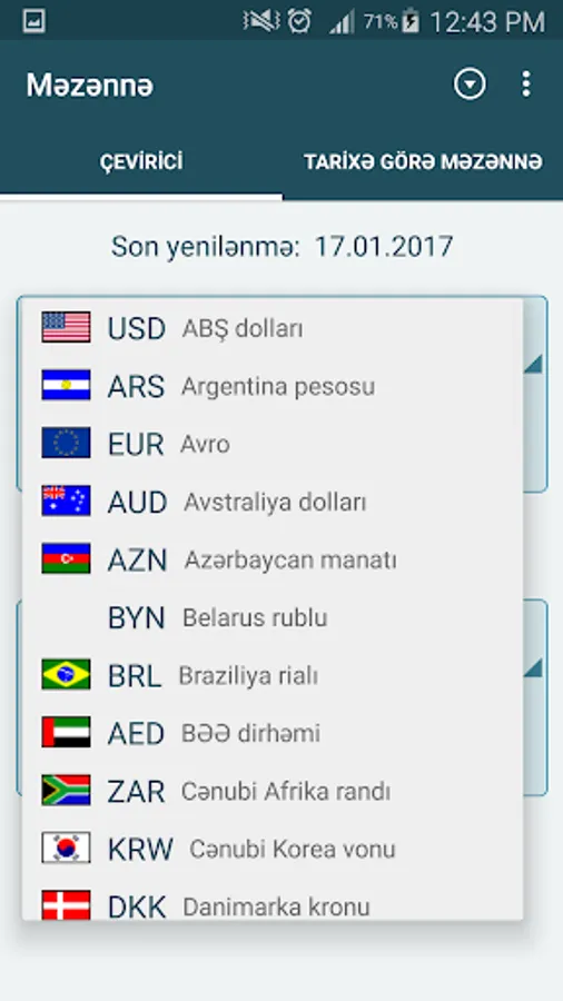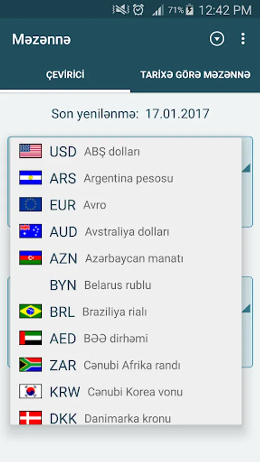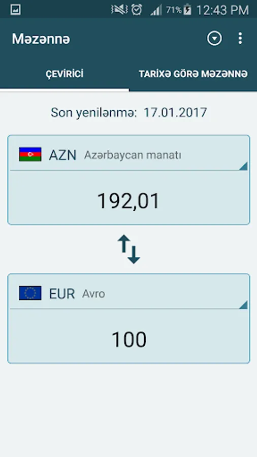 Siz valyuta kalkulyatorundan istifadə edərək vahidlərin bir-birinə nəzərən miqdarını hesablaya bilərsiniz.