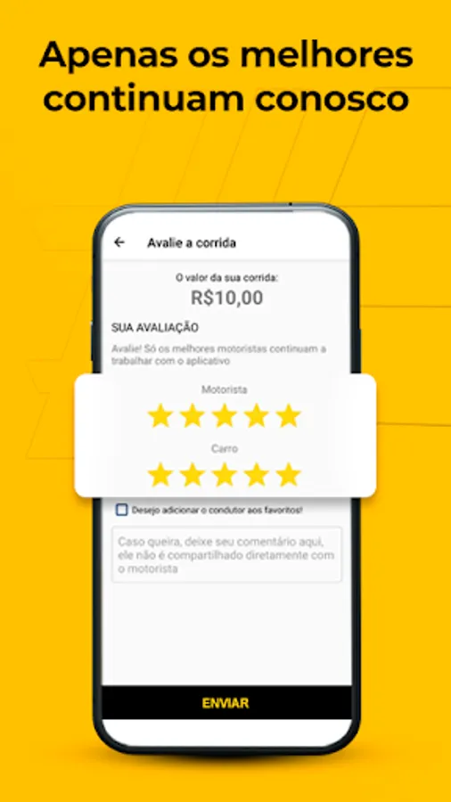 In addition to worrying about the comfort and safety of our passengers, with Passenger Partiu, we work with fair fares for the race, in order to bring greater savings to our passengers, we have discount coupons available on the platform. So that there are no surprises, the game's app shows all users an estimate of the price that will be charged for the race.
