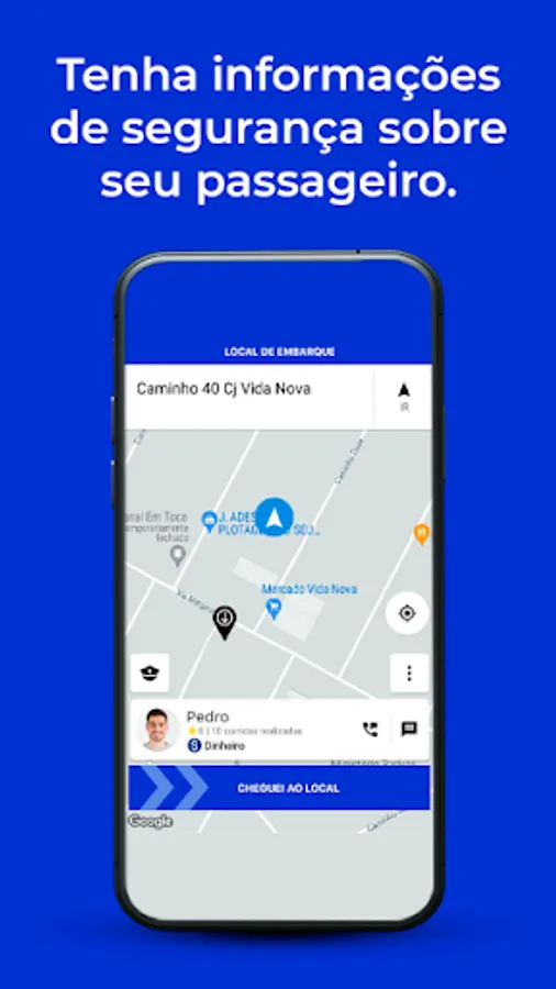 With just one click, you accept the race and receive all the passenger's information, including the passenger's name and location.