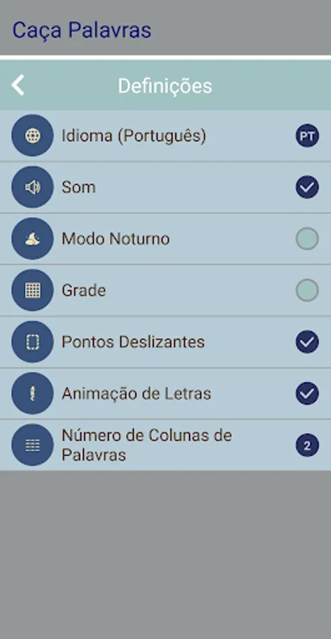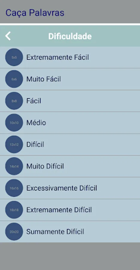 This version is a classic word search game where you can choose one of 9 levels of difficulty from the easiest level to the highest difficulty level