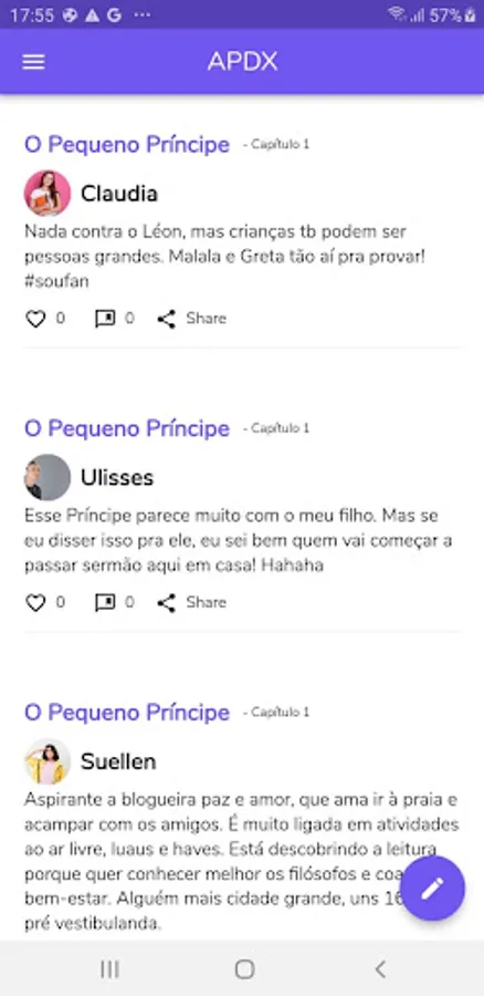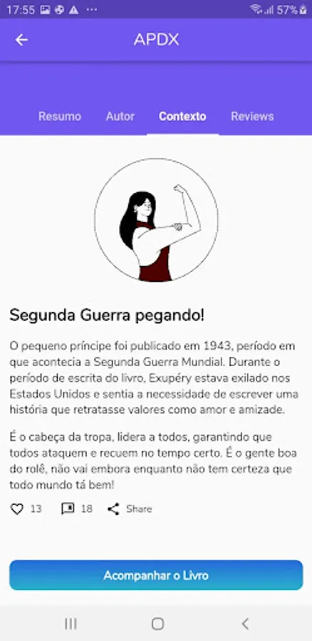 Appendix Books is an app that complements the book reading experience. In the app, the user selects the work he is reading and the page he is on. From there, you can see complementary content to the book, such as character details and author comments. You can also comment on the pages together with your friends - without fear of spoiling, as comments only appear on the indicated page.