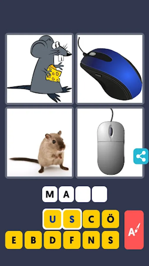 * Simple gameplay: look at the four pictures and guess the corresponding word.
