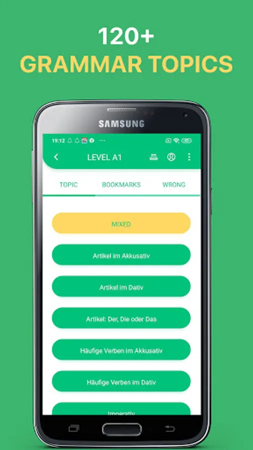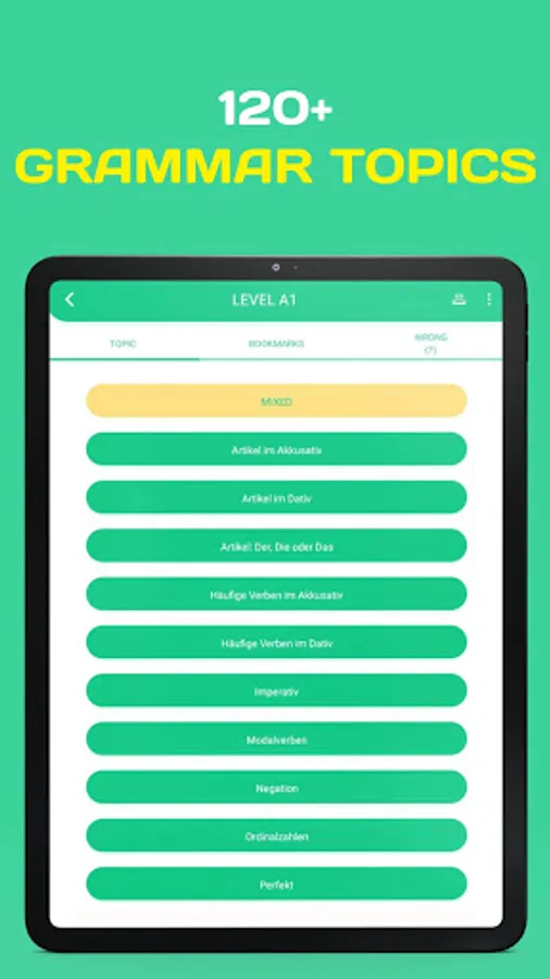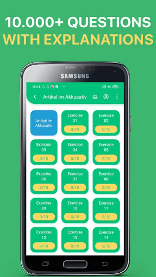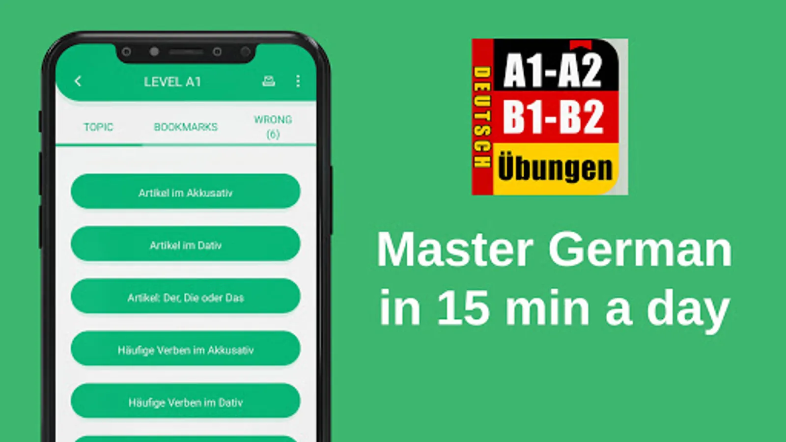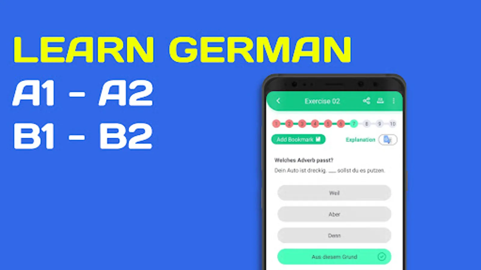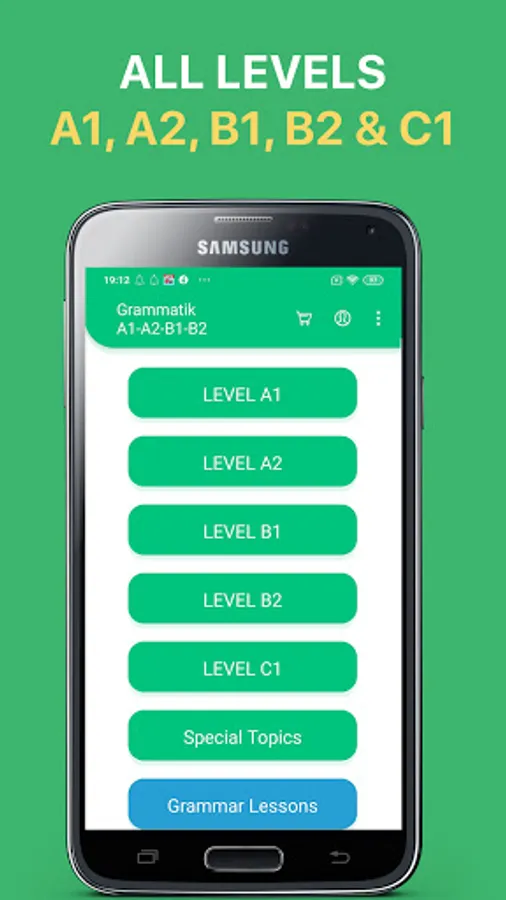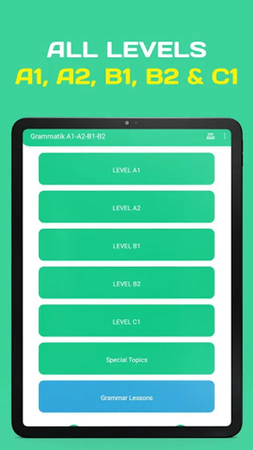 - Lots of great grammar exercises in A1, A2, B1 and B2 level. With thousands of multiple-choices questions in various topics, our German language learning app gets you ready for any grammar exams.