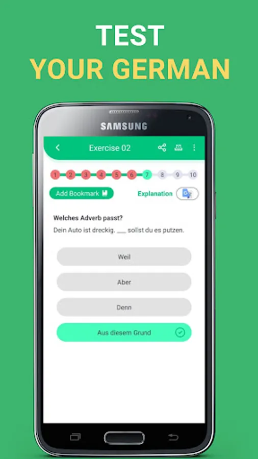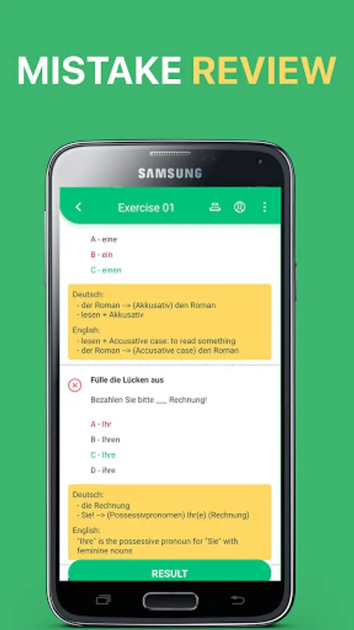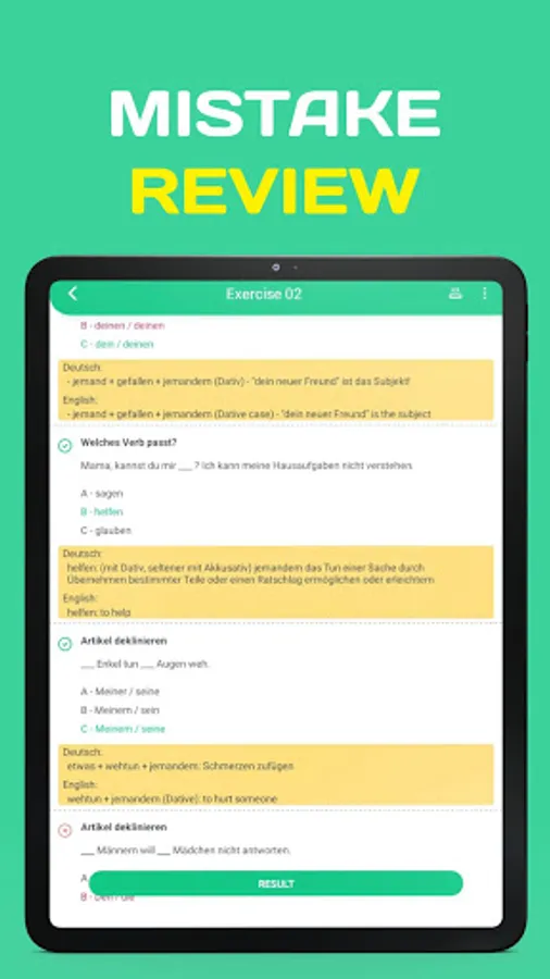 - All questions in this Learn German Free app are with explanations in English and German