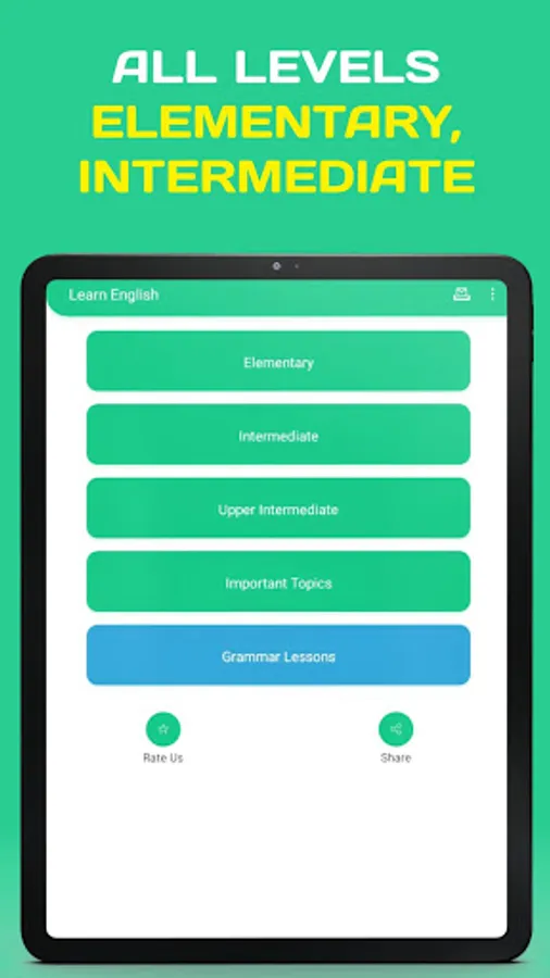 - Lots of great English grammar lessons and English exercises in elementary, intermediate, and advanced levels. Practicing this app is great preparation for your English exam