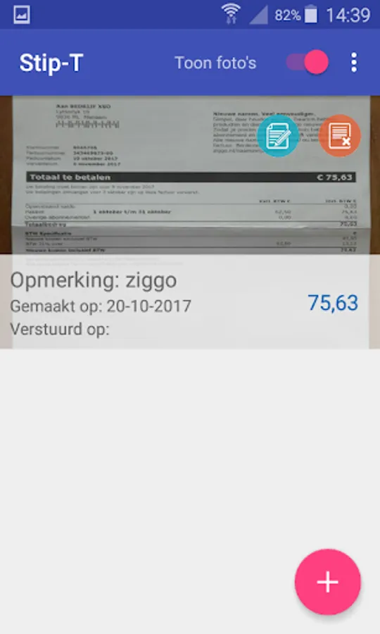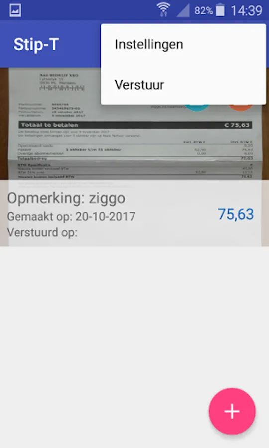 With Dot T app, you can take pictures of receipts or invoices and upload it to your administration in accounting in Stip-T. This app only works with the desktop application of Stip-T.