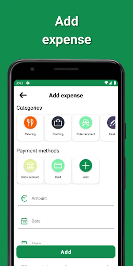 - Customize the categories of expenses and payment methods; otherwise use the ones already provided to simplify your experience