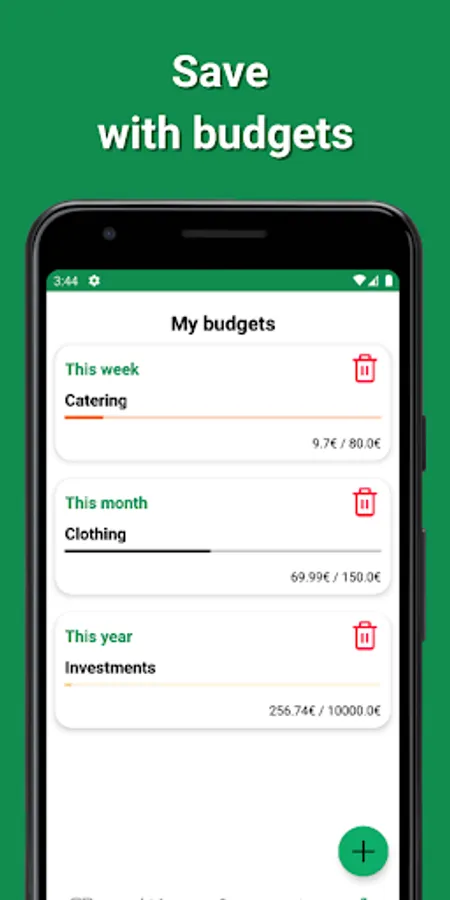 - Choose the budgets to reach your savings goals, being notified before and during the exceeding of the pre-established threshold
