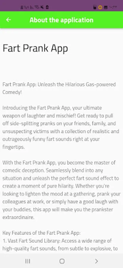 With high search click keywords such as "fart prank," "prank app," and "hilarious pranks," our Fart Prank App is designed to cater to pranksters who want to spice up their gatherings with friends. Whether it's a casual get-together or a special occasion, our app guarantees laughter-filled moments and unforgettable memories.